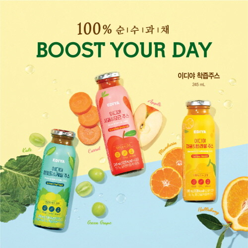 이디야커피의 ‘착즙주스’는 첨가물을 넣지 않고 과일과 채소를 100% 착즙하여 만들어 자연의 맛을 그대로 느낄 수 있는 과채주스이다. 건강을 중시하는 소비 트렌드에 맞춰 간편하게 즐길 수 있는 RTD 형태로 출시됐다.