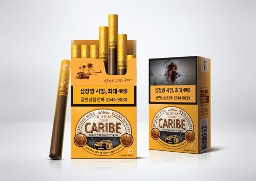 ‘보헴 시가 카리브’의 타르와 니코틴 함량은 각각 4.0mg, 0.30mg이며, 가격은 갑당 4500원이다.