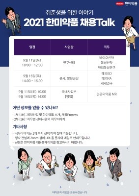 공채 접수 기간 중 한미약품은 취업 준비생들을 위한 ‘2021 한미약품 채용Talk(채용설명회)’도 마련했다.