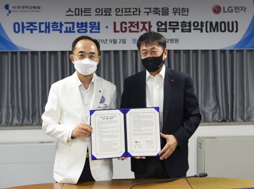 아주대병원은 LG전자와 스마트 의료 인프라 구축을 위해 공동 연구개발, 기술개발 및 정보 교류 등 상호협력하는 협약(MOU)을 체결했다고 2일 밝혔다.