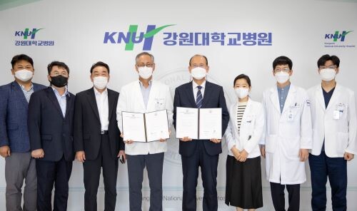 | ▲강원대병원-춘천바이오산업진흥원 협약 체결식 모습 (사진= 강원대병원 제공) |
