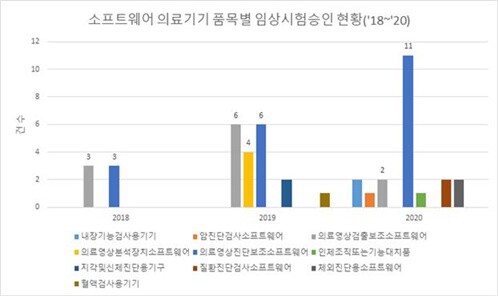 | ▲ 소프트웨어 의료기기 품목별 임상시험 승인 현황 (사진=식품의약품안전처 제공) |