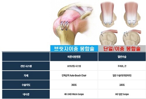 로봇관절은 기존의 불안정한 어깨 견인문제를 해결했고, 오토 비치체어 포지션은 측방와위 자세의 도달/접근 한계를 해결해 광범위 파열 환자라도 시야나 공간에 문제없이 자유롭게 수술이 가능하다. 또한 브릿지이중봉합술의 근간은 뼈와 힘줄을 파열 이전의 해부학적 상태로 복원하는 것으로 두 가지 고위험인자 문제를 보완해냈다.
