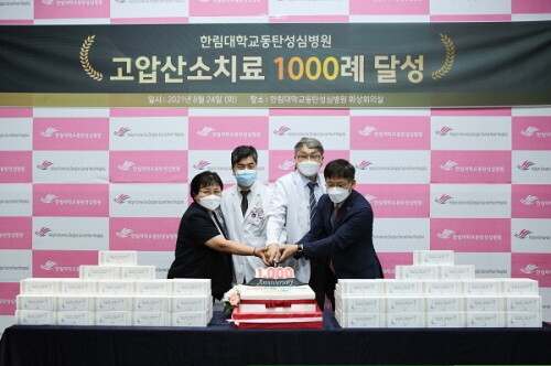 한림대학교동탄성심병원은 지난 8월 24일 고압산소치료 1000례 돌파를 기념해 본관 화상회의실에서 온라인과 오프라인으로 기념행사를 개최했다.