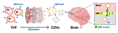 엠디뮨과 Vect-Horus는 엠디뮨의 세포유래 베지클(Cell-derived Vesicle, CDV)의 표면에 VECTrans를 접목해 극소량의 약물만으로 정확하게 뇌에서 효과를 보이는 차세대 약물 전달 시스템 개발을 목표로 하고 있다.