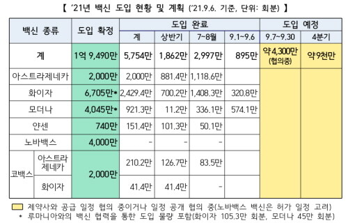 이로써 지난 1일부터 이날까지 895만 회분의 화이자·모더나 백신이 공급됐으며 누적 5754만 회분의 백신이 공급됐다.