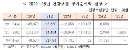 | ▲2021~2025년 건강보험 당기순이익 전망 (사진=전봉민 의원실 제공) |