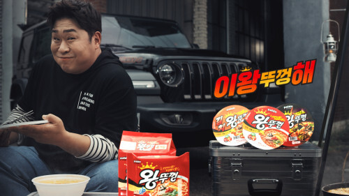 신규광고는 ‘이왕~뚜껑해’편으로 배고픈 문세윤의 등장으로 시작한다. 마트와 편의점, 차박 캠핑 등 다양한 상황에서 이왕 먹을 것이면 든든한 왕뚜껑을 먹으란 메시지를 ‘이왕~뚜껑해’라고 재치 있게 표현했다. 일종의 언어유희로 마치 ‘왕~뚜껑해’처럼 들린다.