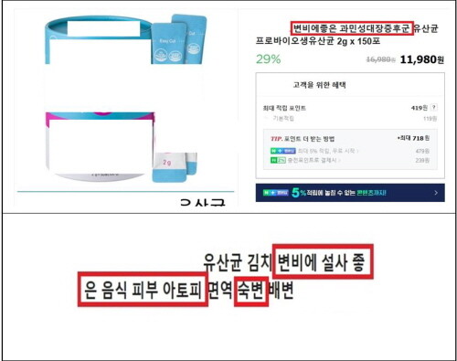 이는 건강기능식품인 프로바이오틱스 부당한 광고 사례다.