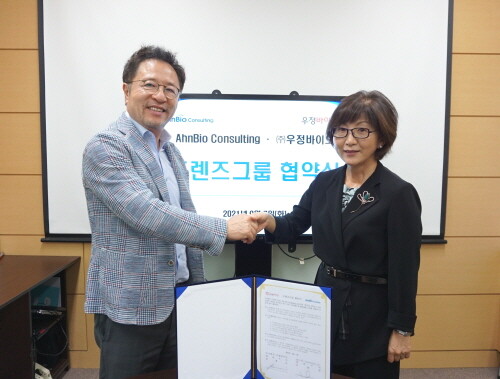 | ▲주식회사 우정바이오는 안바이오 컨설팅과 신약개발 컨설팅 협력 및 유기적인 협력체계 구축을 위한 업무 협약을 체결했다고 9일 밝혔다. (사진=우정바이오 제공) |
