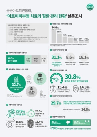 | ▲아토피피부염 환자 대상 설문조사 인포그래픽 (사진=중증아토피연합회 제공) |