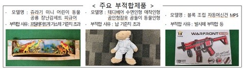| ▲ 상품 가운데 테디베어 수면인형 애착 인형, 곰 인형 잠옷 곰돌이 동물인형 등에서 중추신경장애 등을 유발하는 납 성분이 기준치를 초과했다. (사진=국가기술표준원 제공) |