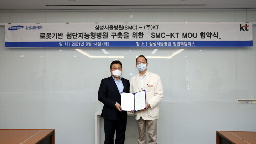 삼성서울병원은 KT와 ‘로봇기반 첨단지능형병원(Robot-driven Smart Hospital)’ 구축을 위한 업무협약(MOU)을 체결했다고 15일 밝혔다.