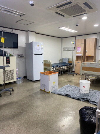 | ▲ 천장에서 물이 떨어지는 병실의 모습 (사진=온라인 커뮤니티 캡쳐) |