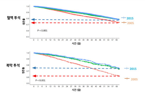 복막 투석 치료 환자의 생존율 또한 증가해 2005년 63%에서 2015년 약 76%로 확인됐다.
