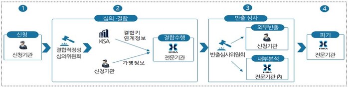 심사평가원은 지난해 10월 29일 보건복지부로부터 보건의료분야 결합 전문기관으로 지정받은 이후, 보건의료분야 결합전문기관 실무협의체에 참여해 내부규정을 수립하고, 세부 업무 프로세스와 결합시스템도 운영해 왔다.