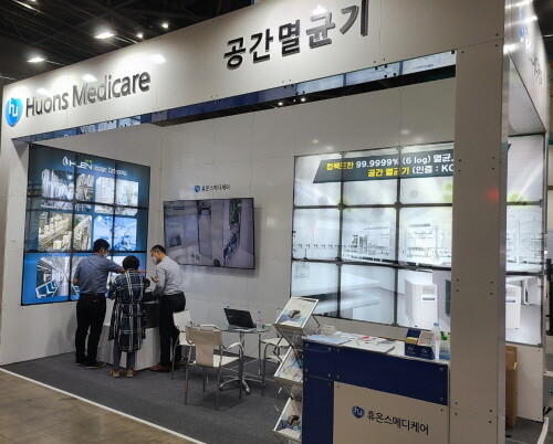휴온스메디케어는 이번 전시회에서 자체 개발한 최신형 공간멸균기 휴엔 IVH ER에 탑재된 신기술 ‘에어쿠션 기술’의 차별화된 멸균력과 경제적, 효율적 멸균의 중요성을 강조했다.