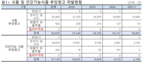 건강기능식품 부당광고 역시 4172건으로 집계되며 절반 이상 줄었다.