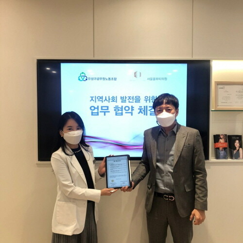 | ▲올뷰티의원-유성구 공무원 노동조합 MOU 체결식 (사진=올뷰티의원 제공) |