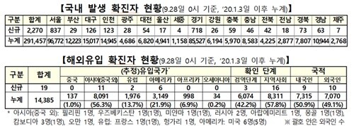 중앙방역대책본부는 9월 28일 0시 기준으로, 국내 발생 신규 확진자는 2270명, 해외유입 사례는 19명이 확인되어 총 누적 확진자 수는 30만5842명(해외유입 1만4385명)이라고 밝혔다.