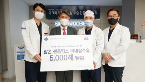 글로리서울안과는 새로 도입된 알콘사의 팬옵틱스의 노안·백내장 수술 5000회를 달성해 인증패를 수여받았다고 29일 밝혔다.