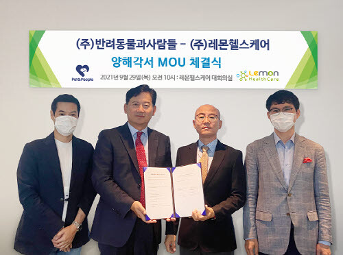 | ▲반려동물과 사람들-레몬헬스케어 업무 협약식 (사진=반려동물과 사람들 제공) |